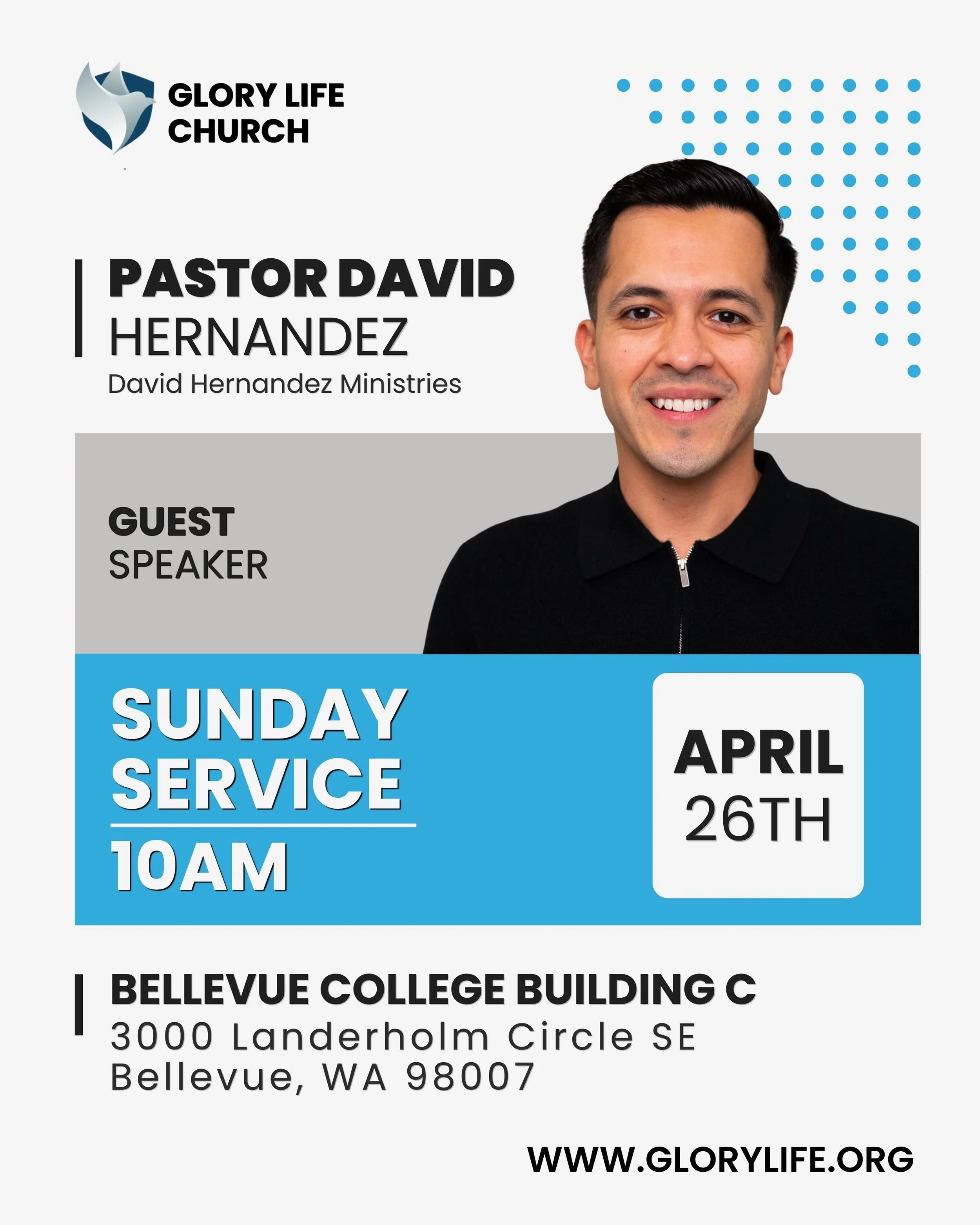 Sunday Service with Pastor David Hernandez Sunday, April 26, 2026 10:00 AM 12:00 PM Bellevue College - Building C 3000 Landerholm Circle Southeast Bellevue, WA, 98007 United States (map) Google Calendar ICS